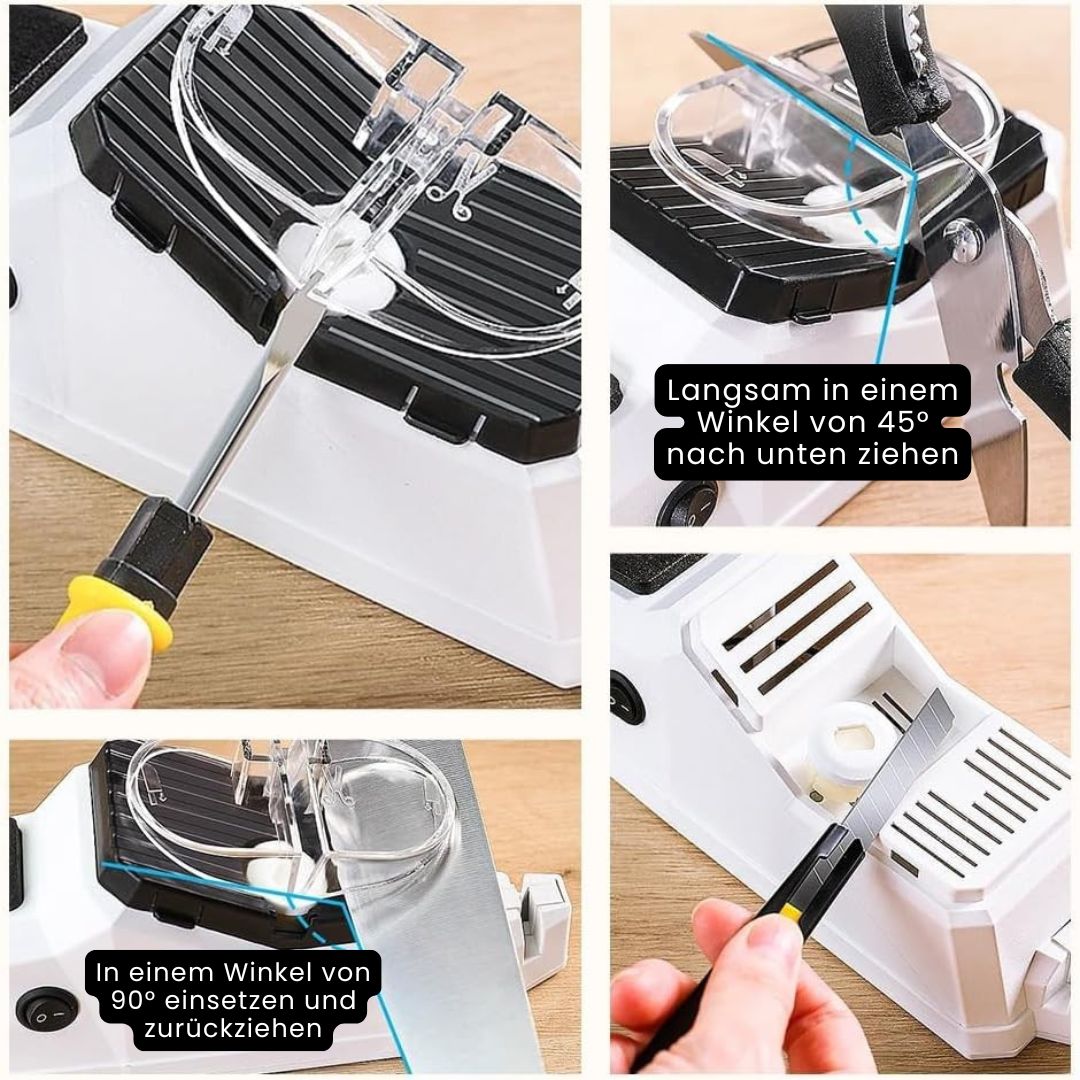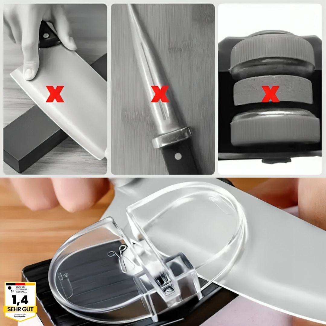 Stumpfe Messer sind nicht nur nervig – sie sind gefährlich. Die meisten herkömmlichen Messerschärfer ruinieren deine Klingen mehr, als dass sie helfen. Billige Schleifgeräte arbeiten ungenau, überhitzen das Metall oder schleifen deine Messer ungleichmäßig ab.